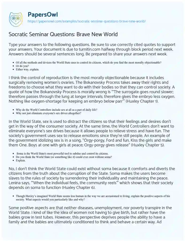 See these Brave New World Socratic seminar questions